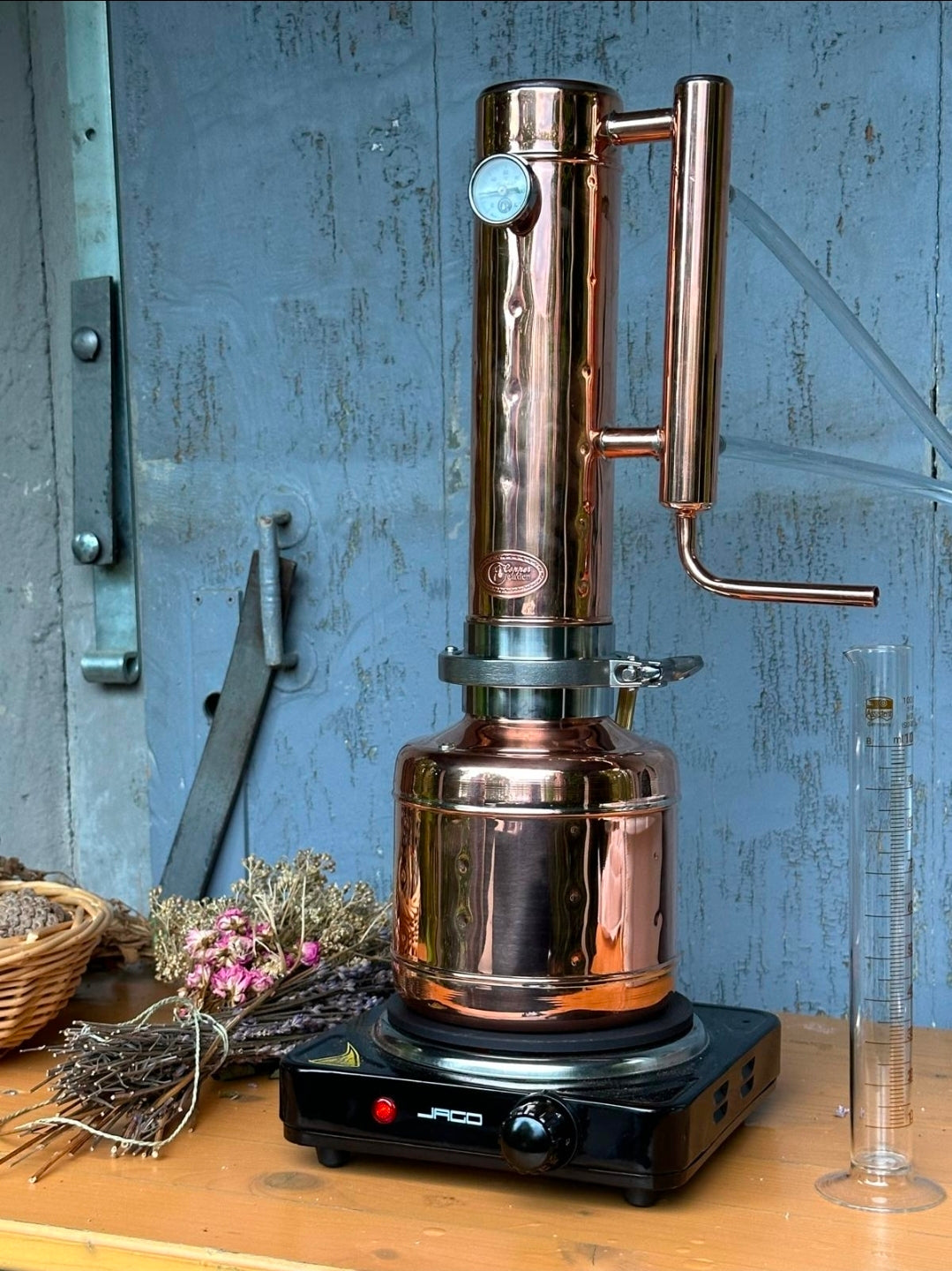 Zwischen der Magie des Sammelns im Garten, dem Anfeuern der Destille und dem Zauber des ersten selbst gewonnenen Tropfens ätherischen Öls tauchen wir tief in die Welt der Pflanzenessenzen ein.